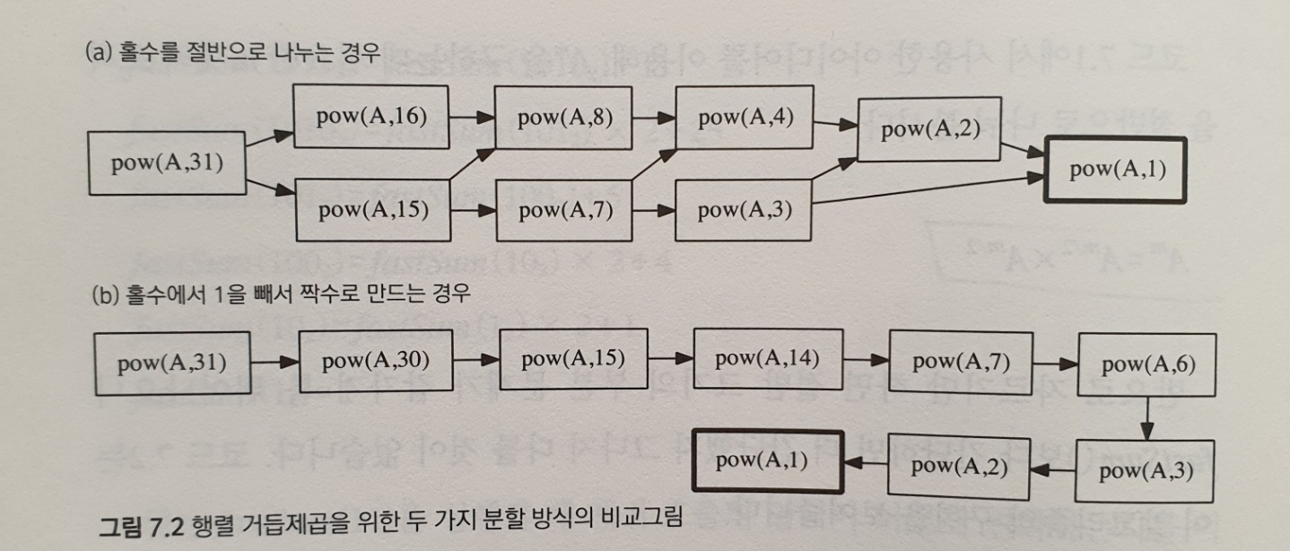 행렬의 곱셈에는 결합법칙을 적용할 수 있으므로 문제를 분할할 수 있다.