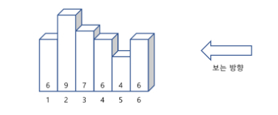 아래 그림처럼 높이만 다르고 (같은 높이의 막대기가 있을 수 있음) 모양이 같은 막대기를 일렬로 세운 후, 왼쪽부터 차례로 번호를 붙인다. 각 막대기의 높이는 그림에서 보인 것처럼 순서대로